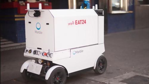 The bot's mechanical arm is fitted with nozzles that can spit out any number of substances used in building construction, such as concrete or insulation.