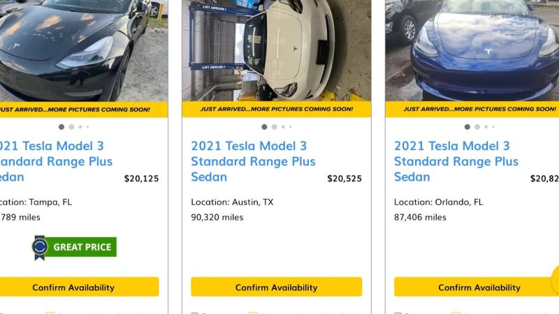 Across the US, there were 657 Teslas to choose from — mostly Model 3s — with some listings as low as $20,125 when we checked on Thursday afternoon.