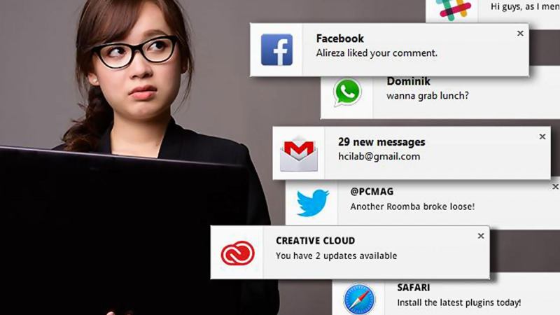 Notifications appear in the browser, dropping down from the URL bar to ask whether or not a website can use your location or send you notifications. Autoplay videos are usually sent from specific websites and interrupt your browsing experience. Push notifications are sent from specific services — like Slack, Twitter or Facebook — and temporarily display over whatever window you have open.