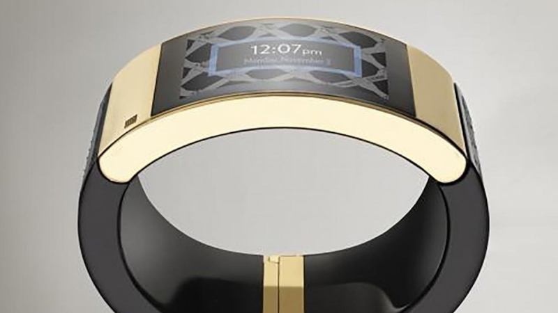 As well as lapis stones, obsidian and an 18k gold coating, the devices include a sapphire curved screen on the inside of the wrist that displays text messages, calendar items and events from Google and Facebook, and recommendations of nearby restaurants and stores from Yelp.