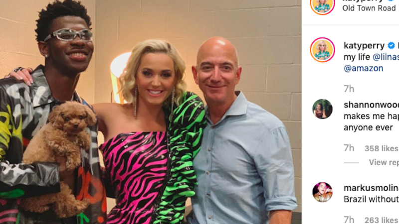 Amazon CEO Jeff Bezos partied backstage with Katy Perry and rapper Lil Nas X during a concert for Amazon employees on Tuesday in Seattle.