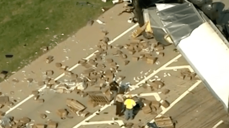 Truck Crashes and Empties Contents Full of Adult Entertainment Toys All Over Highway