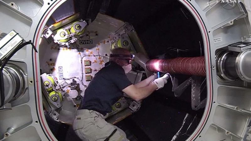On Friday, Williams and Rubins routed a cable for the second docking port’s installation in early 2018.