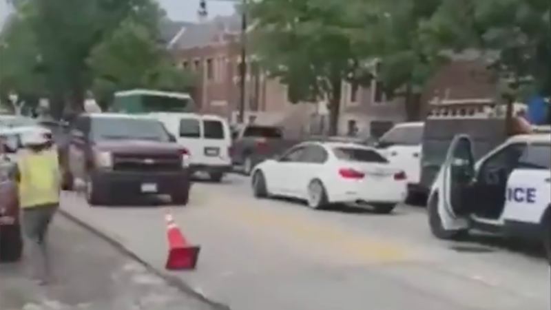 Police said that the officer struck was sent to the hospital, though their injuries are “not life-threatening.”