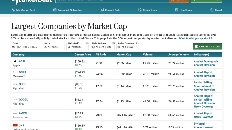 Many investors visit the MarketBeat site to research one or more individual stocks. MarketBeat delivers all the information you need via the stock’s profile page. You can use the menu to look at a company’s dividend and earnings history. You can also see any insider buying and selling that has been happening and the level of institutional ownership. And that’s just for starters. You’ll also see a company’s stock chart and analyst ratings.