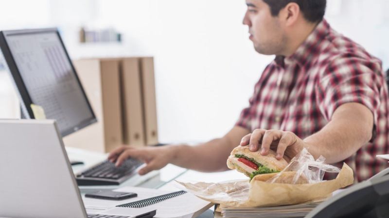Almost two-thirds of Americans eat lunch at their desk, and this statistic is probably not that different in other locales where most people work in an office. It would be unusual to walk into any kind of office at lunchtime and not see people typing with one hand while holding a sandwich with their other.