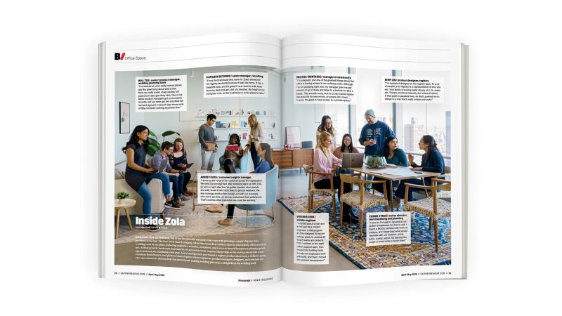 In every issue of Entrepreneur, we publish a series we call Office Space. For years, each edition has featured an intriguing company; we’d photograph some of the team in their office and ask about their work culture. For our April/May 2020 issue, we spotlighted the wedding-planning company Zola — which had just moved to its new HQ after a staffing boom and had expanded features to help couples create the weddings of their dreams. But in between our taking the photo and actually printing the magazine, the pandemic arrived and disrupted everything…especially wedding celebrations.