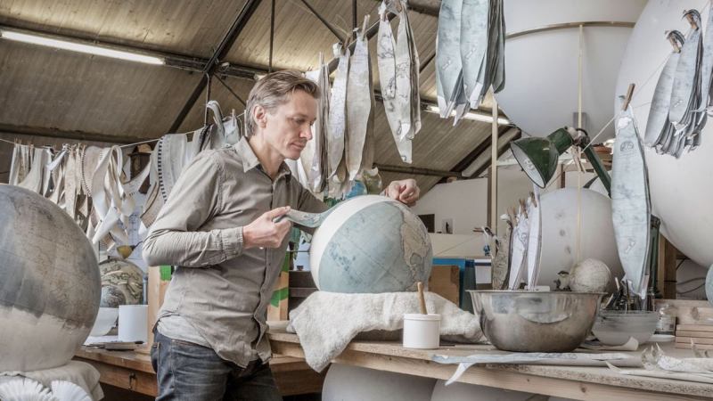 In a sunlit warehouse in north London, white spheres sit in varying states during their transformation into globes. Pieces of maps hang from clotheslines all around, and tools of the trade — mixing bowls, paintbrushes, scalpels and hand-engraving tools — litter the room. Woodworkers and cartographers work alongside painters and designers. And at the center of it all is Peter Bellerby, founder of Bellerby and Co., one of the world’s only remaining traditional globe makers.