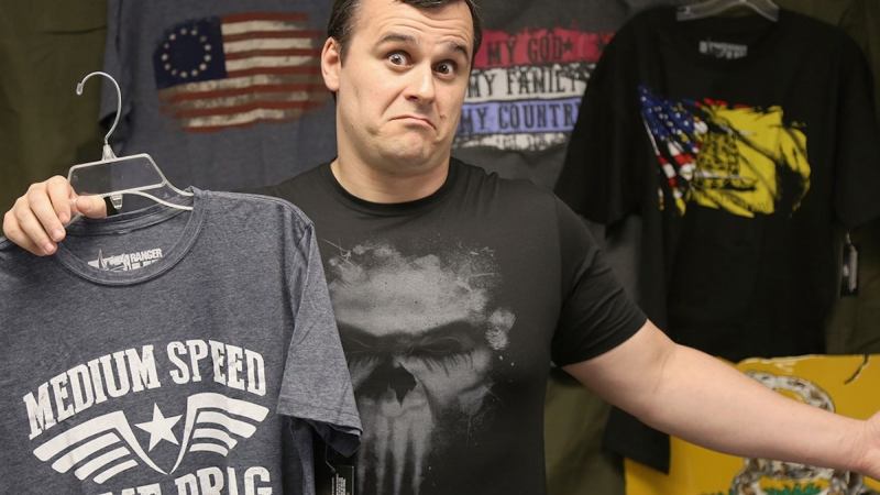 “The students were always complaining that they didn’t have cool military T-shirts. Everything at the time had been skulls and snakes and ‘Death from Above’ — they looked like biker T-shirts. So I started making funny T-shirts for my students, not charging anything for them. I had one with Saddam Hussein looking just like Ron Burgundy in Anchorman, and it said, ‘You stay classy Iraq.’ My students loved them and said that I should start a company. But I didn’t right away.”