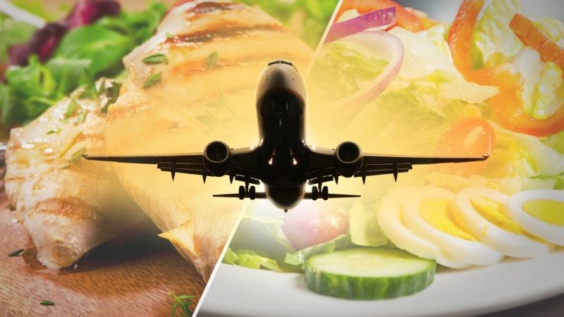 Airport meals and airplane snacks are often processed and packed with sodium. Pack healthy snacks like nuts, whole-grain crackers, raw veggies, Greek yogurt or string cheese in your carry-on.