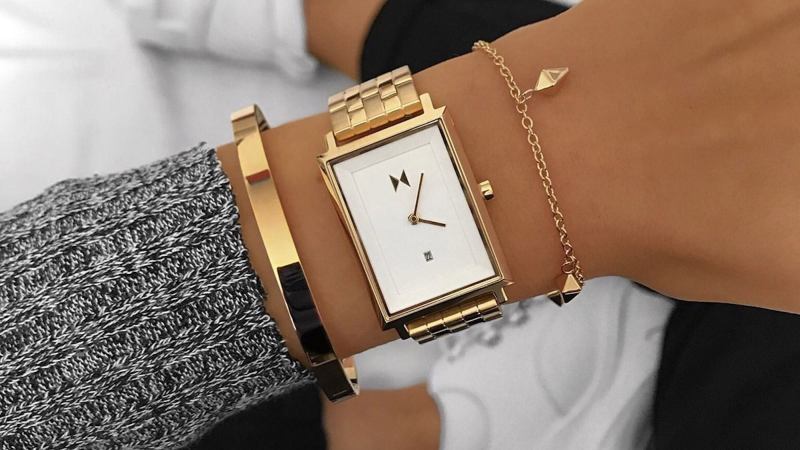 Looking for a more geometric option? This rectangular design from direct-to-consumer design brand MVMT, fits the bill. It comes complete with a polished stainless steel gold band and has a dial that’s as minimalist as it gets.