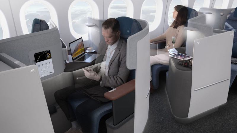 The various seating formations will allow each passenger aisle access, and there will be some configurations that allow people traveling in pairs to be together behind one partition. Passengers may control the seat and in-flight entertainment system (complete with large HD screens) from a phone or tablet.