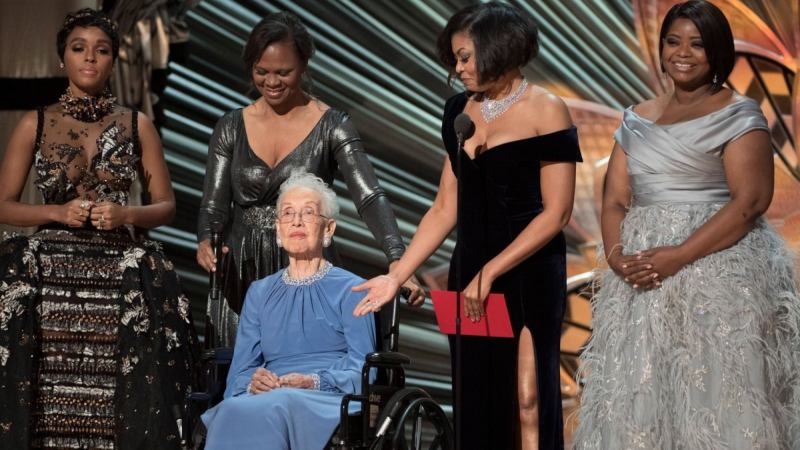 The movie Hidden Figures is its own inspirational story, tracking the unsung work of NASA employees Katherine Johnson, Dorothy Vaughn and Mary Jackson, who made it possible for John Glenn to be the first American in orbit. The real-life Katherine Johnson took to the stage this year with three actresses who helped bring her life to the screen. The appearance got a standing ovation.
