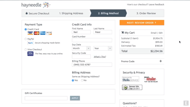 In this video, Entrepreneur Network partner Neil Patel wants to give you tips you can use to reclaim those potential sales and earn the profit you worked so hard for. He suggests you should start by creating a two-step checkout page, with the first step just acquiring contact information. That way, if users fail to complete the entire purchase, you can contact them and remind them of what they’re missing out on.