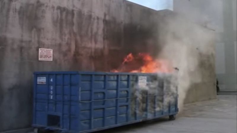 The world’s most famous dumpster fire came from this YouTube video, which identifies the fire as being located behind the official home of The Oscars: the Dolby Theatre in Hollywood, Calif. “Engine 27 makes quick work of a large dumpster fire,” the video caption says.