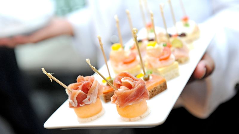 “We had to get very clever with food-delivery devices that [held items] substantive enough so that if somebody ate enough of them, it could make up a full meal,” said Mark Michael of Occasions Caterers, in a story in Washingtonian. Over the years, this has included 40 kinds of sticks, from meat skewers to bamboo spears to dessert lollipops.