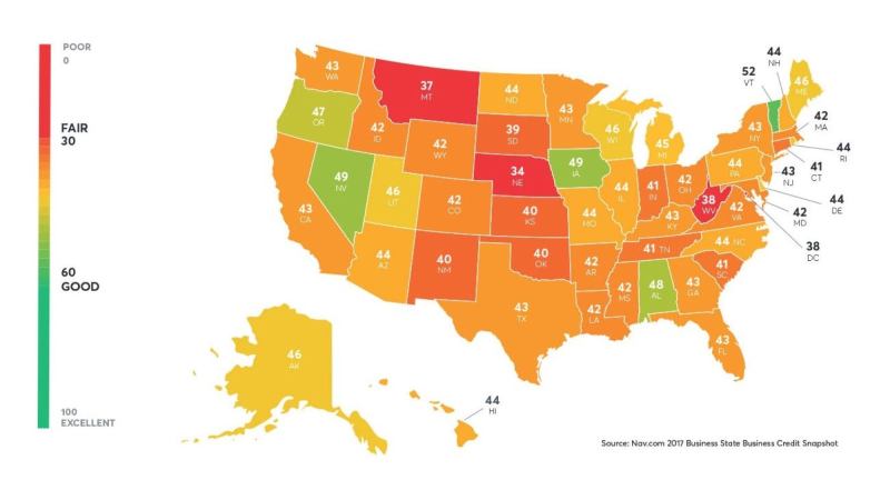 Here are the five states with the lowest business credit scores, according to Nav: