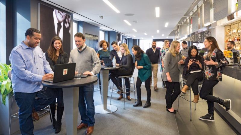 “If you were to do a heat map, you’d see people here don’t spend much time at their desks. There’s a lot of movement, and that fluidity facilitates a lot of dynamism. And a lot of people end up at the bar.”